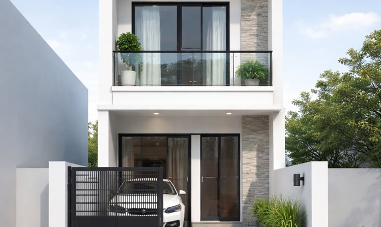 Rumah 2 lantai dan mezanine dengan desain modern, lingkungan aman dan asri di Tanjung Priok.